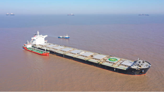 浙江省舟山港域虾峙门外锚地3号锚位,一艘来自澳大利亚的散货船正等待加油,加油量1500吨。加油过程中,无需人员上下,无接触…