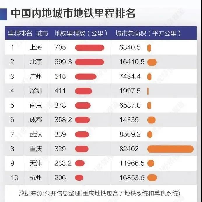中国内地城市地铁里程前十排名:新一线城市竞争激烈