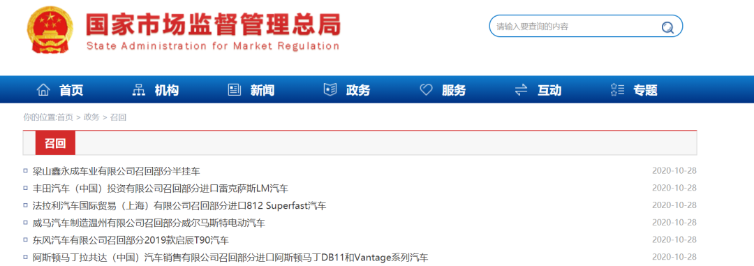 10月28日,国家市场监督管理总局发布一系列召回信息。
