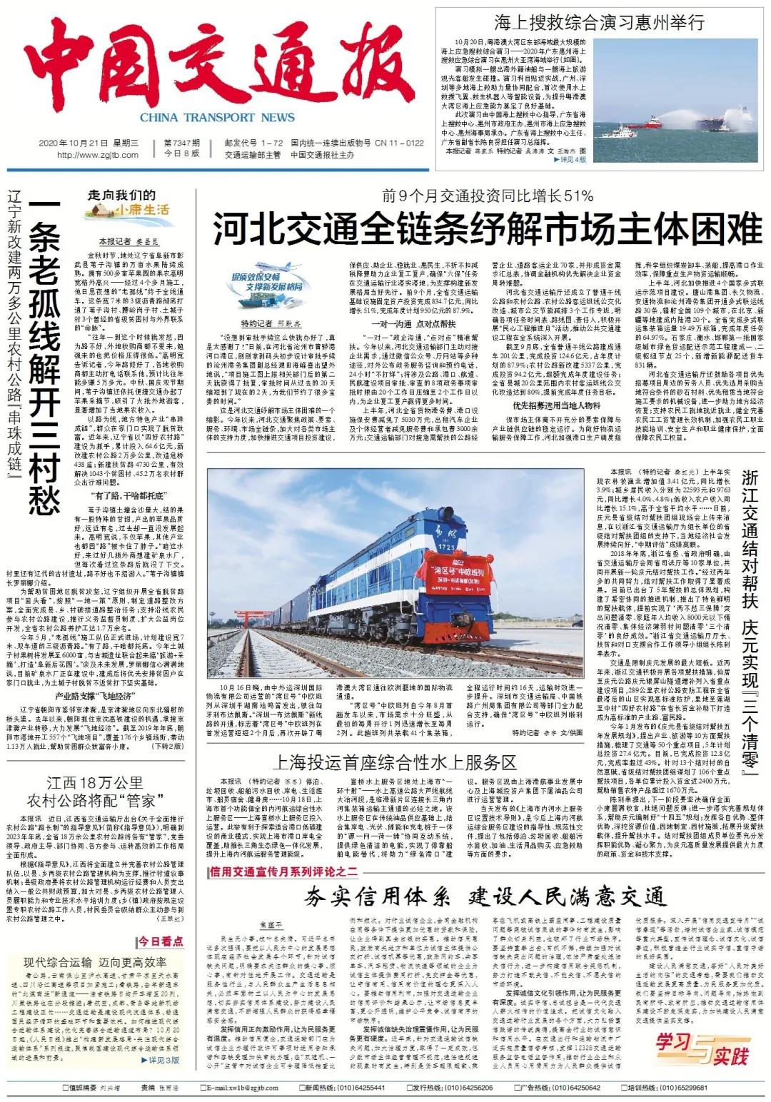 编委读报丨河北前9个月交通投资同比增长51%;山东交通强省20项任务走在前列;惠州大亚湾海上搜救综合演习场面震撼……