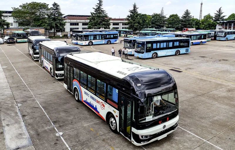 在位于浙江省金华市工贸区的金华公交集团三分公司,14辆崭新的新能源巴士一字排开,整装待发。安装标识标牌、贴上内饰、擦拭车…