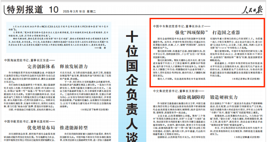《人民日报》|中国中车集团党委书记、董事长孙永才:强化“四项保障”打造国之重器