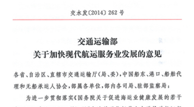 交通运输部出台指导意见 2020年基本形成现代航运服务业体系