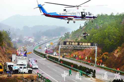 12月13日,2012年度公路交通联合应急演练在湖北省黄(石)黄(梅)高速公路英山县段举行。来自武警交通部队、交通运输部救…