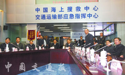 图为杨传堂陪同郭金龙一行参观部海上搜救中心总值班室并听取工作情况介绍 11月30日,交通运输部…