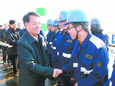 图为杨传堂看望慰问秦皇岛港一线干部职工11月6日,交通运输部部长杨传堂到河北秦皇岛港调研煤炭等重…