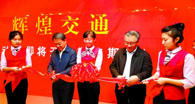 图为杨传堂(左二)、李盛霖(右二)为展览剪彩。9月28日,由交通运输部主办、中国交通报社承办的“…