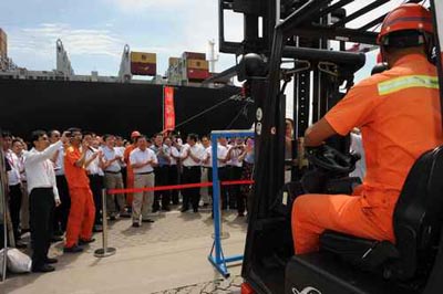 图为现场会上,代表们观摩青岛港港口职工绝活表演。本报记者 杨烨 摄全国交通运输行业道德领域突出问题专项教育和…
