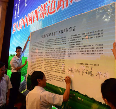 图为“道路客运安全年”西部共同宣言签字仪式。 记者 王涛 摄8月16日,在交通运输部道路运输司以及北京、辽宁、江…
