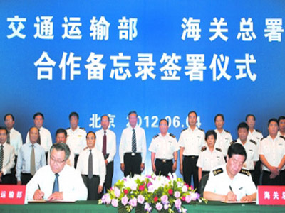 图:签字仪式现场6月4日,交通运输部和海关总署在北京签署合作备忘录,交通运输部部长李盛霖、海关总署署长于广洲…