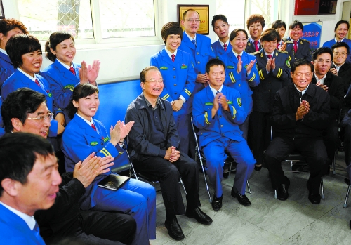 5月1日,中共中央政治局常委、国务院总理温家宝看望辛勤工作的北京市环卫和公交职工,代表党中央、国务院向大家表示节日的…