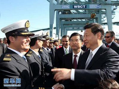 图:中国国家副主席习近平参观中国海运洛杉矶码头…