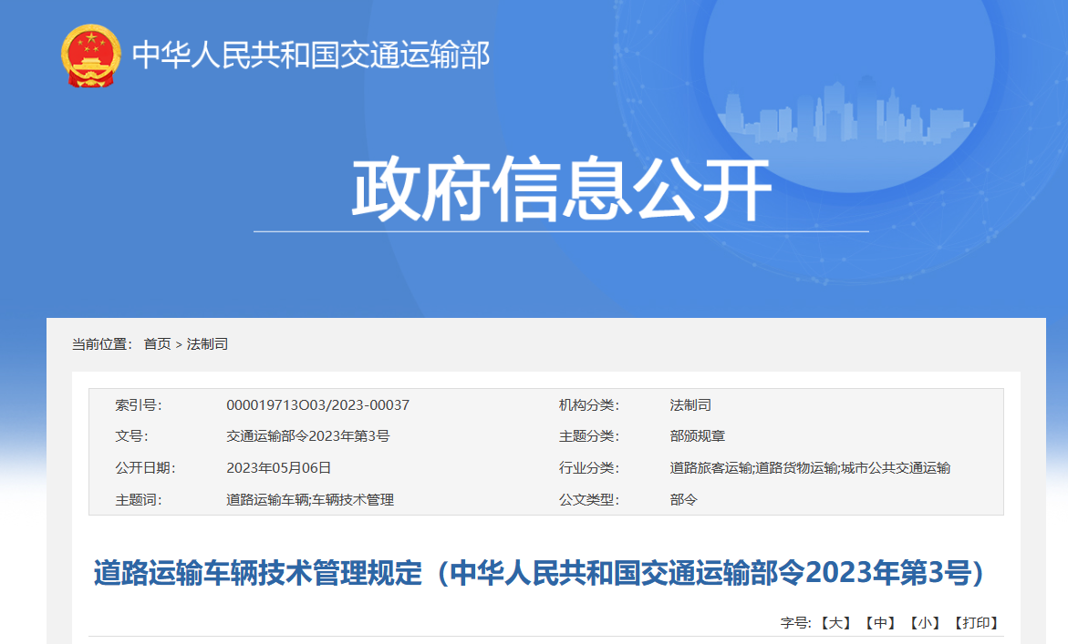 《道路运输车辆技术管理规定》已于2023年4月14日经第8次部务会议通过,现予公布,自2023年6月1日起施行。部长李小鹏2023年4月2…