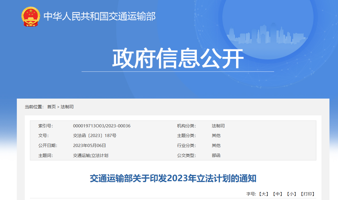 交通运输部关于印发2023年立法计划的通知