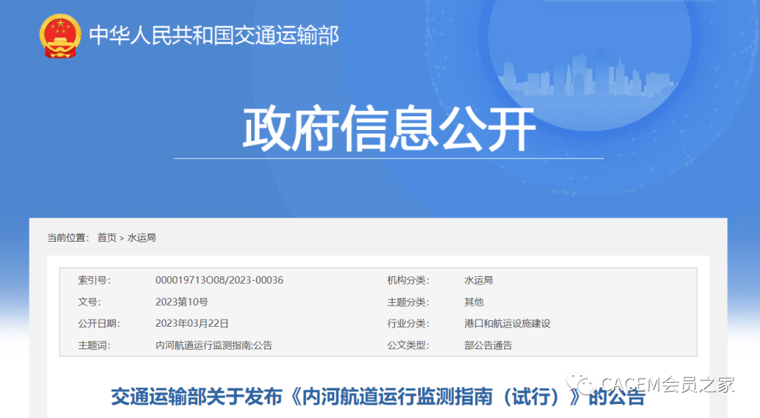 交通运输部关于发布《内河航道运行监测指南(试行)》的公告
