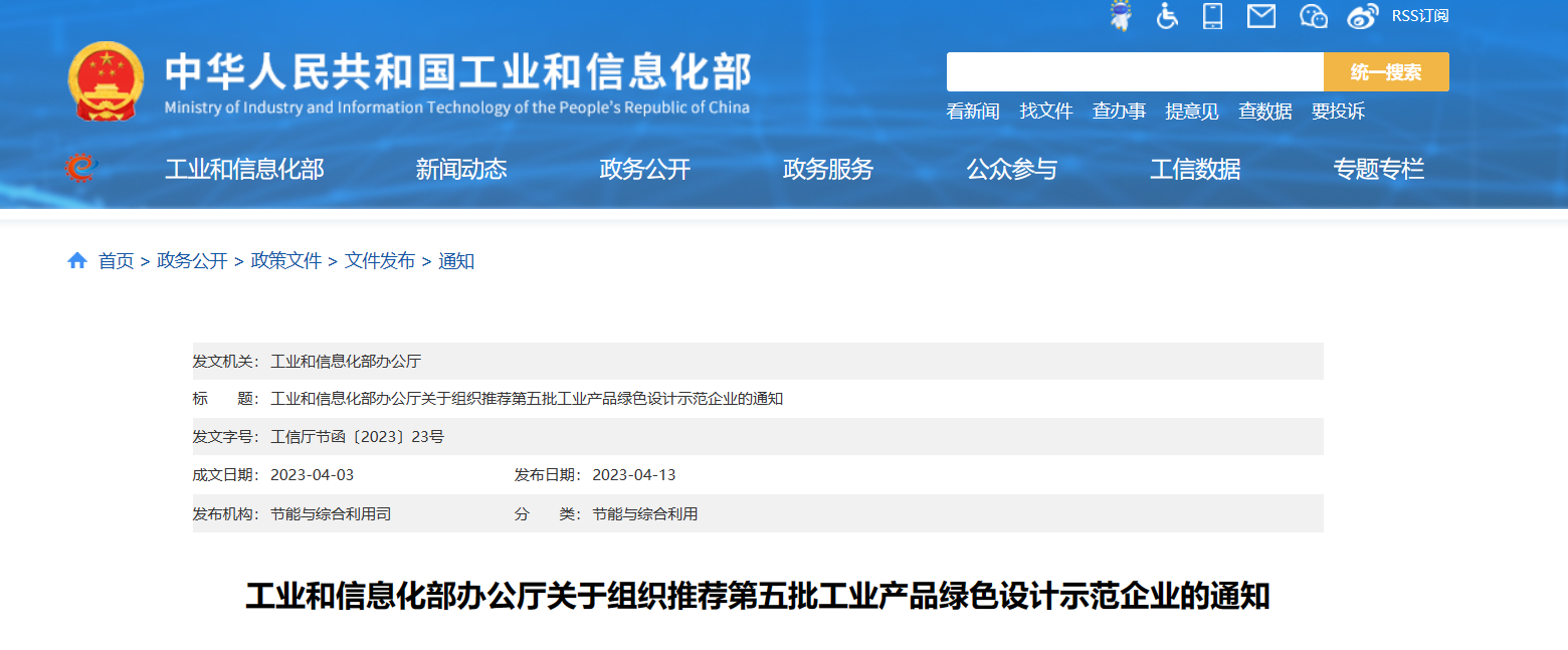 工业和信息化部办公厅关于组织推荐第五批工业产品绿色设计示范企业的通知