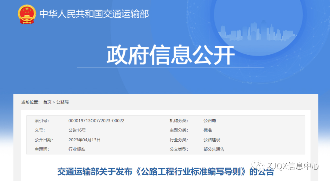 交通运输部关于发布《公路工程行业标准编写导则》的公告