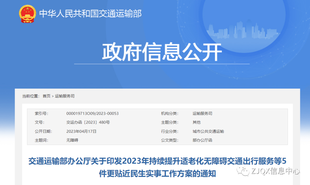 交通运输部办公厅关于印发2023年持续提升适老化无障碍交通出行服务等5件更贴近民生实事工作方案的通知