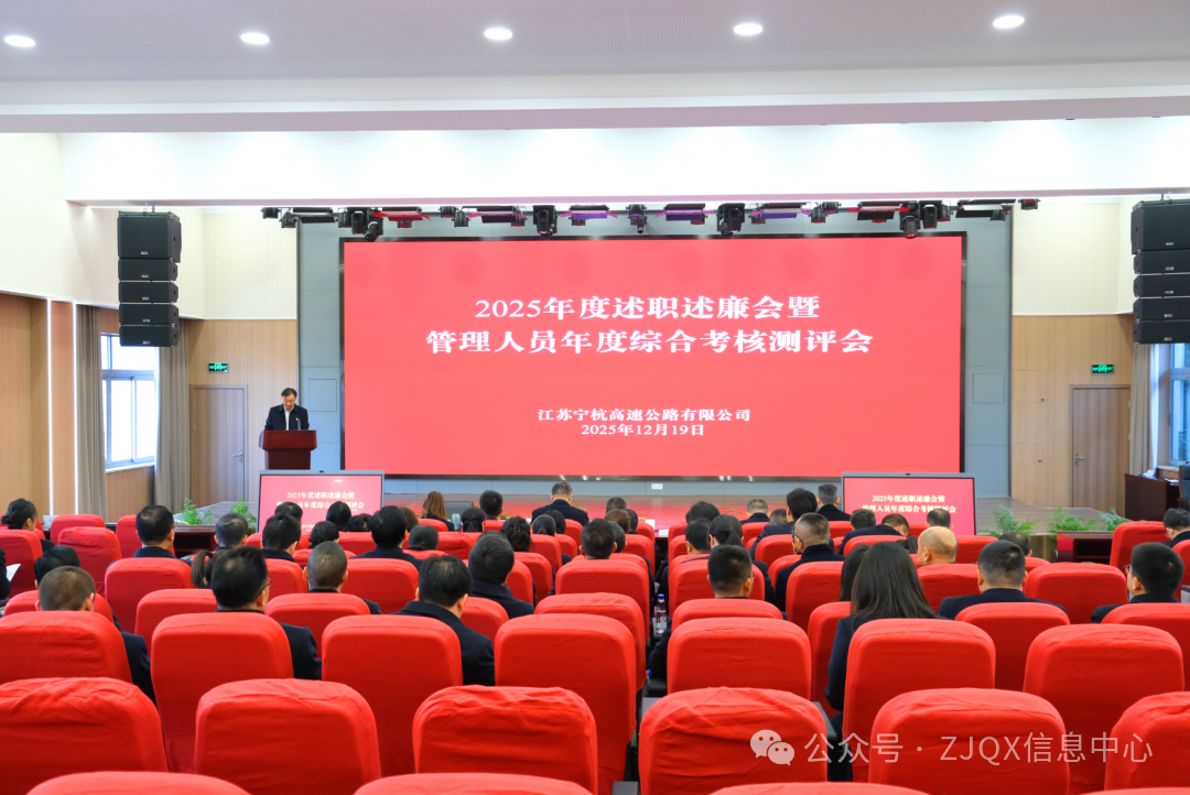 12月19日,我会理事单位江苏宁杭高速公路有限公司在本部多功能厅召开2025年度述职述廉暨管理人员年度综合考核测评会。
