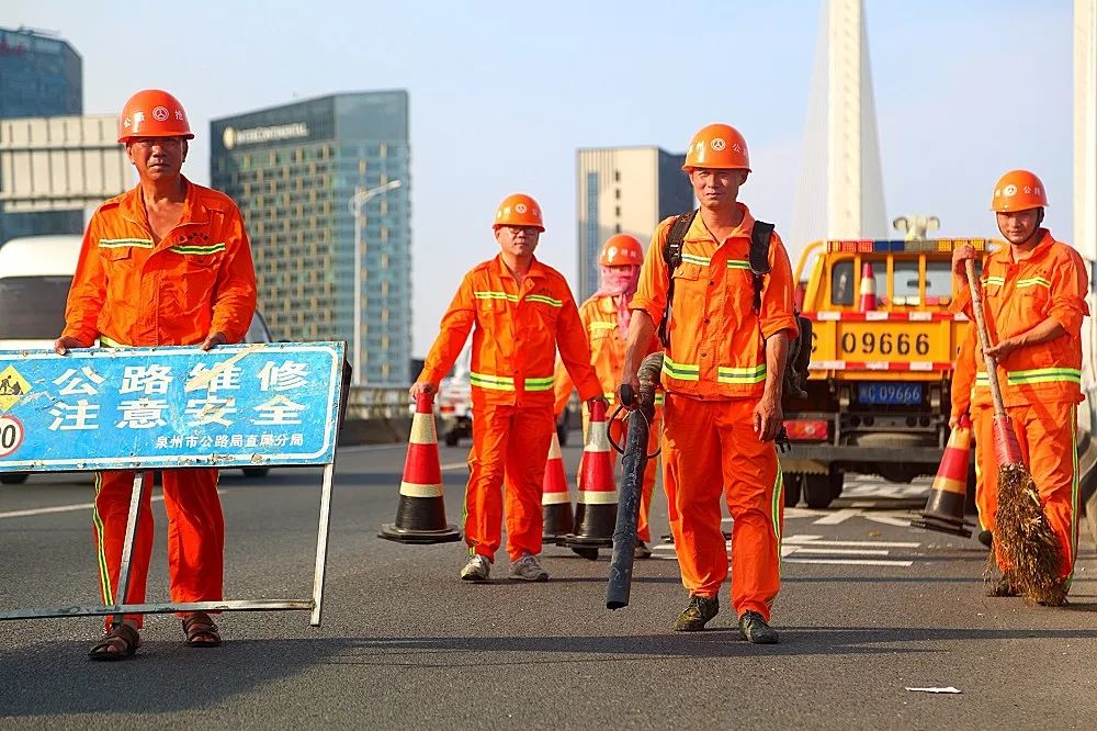 每天早上6点和下午4点,泉州市公路局直属分局市郊公路站的养路工们都要上路进行养护作业,避免暴露在外的交通设施被“晒伤”。