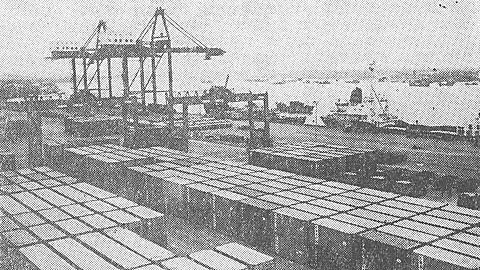 🔺1985年,集装箱船靠泊上海港。