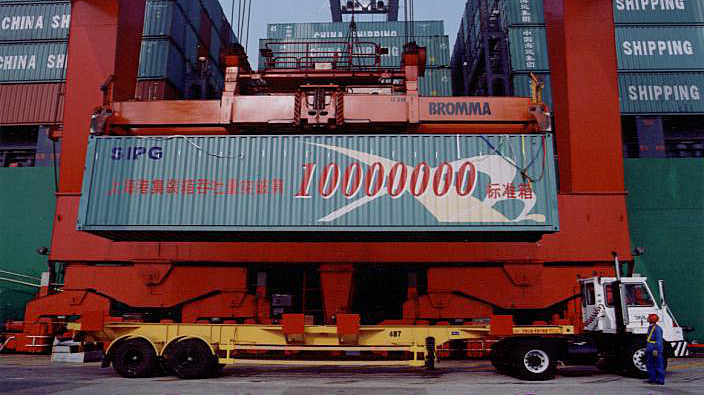 🔺2003年11月30日,上海港第1000万箱集装箱起运仪式在外高桥码头举行。