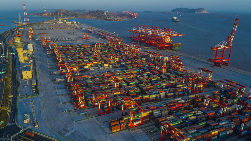 🔺洋山港深水港区货物接卸。