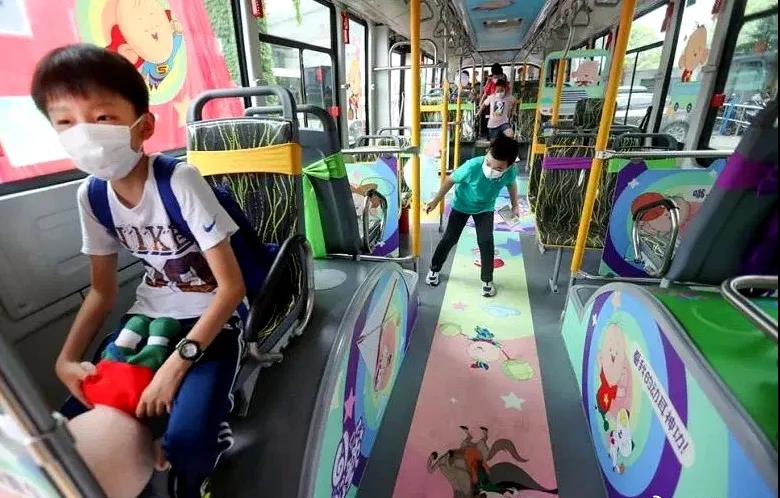 前不久,上海公交有一辆装饰一新的49路公交车,随处可见的表情各异的“大耳朵图图”贴画,下客车门对面的区域则被布置成“打卡区”,供小朋友和喜爱的“图图”一起拍照留影。