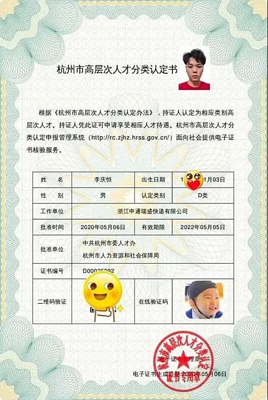 几番周折,李庆恒拿到了新的浙江省技术能手的证书,颁证单位和称号名字都完全符合类目要求。李庆恒每天登录网站,查看流程进展。5月6日,审核通过。李庆恒立马上网下载了杭州市高层次D类人才分类认定书,彩打了一张。