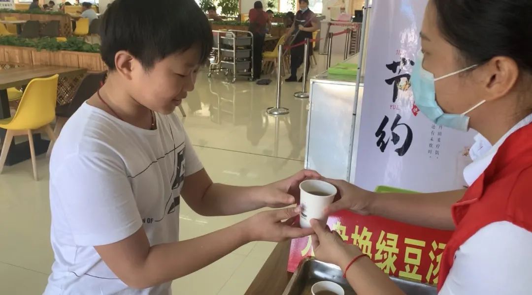 “姐姐,饭我吃干净了!来换绿豆汤!!”8月19日中午,在衢州开化龙顶服务区,一个小男孩拿着刚吃完的碗来找工作人员兑换绿豆汤。为响应制止餐桌浪费的号召,日前,开化龙顶服务区开展“光盘换绿豆汤”活动,在餐厅就餐的旅客把饭菜吃完清盘,就可以换成一碗免费绿豆汤。除了“光盘换绿豆汤”活动,开化龙顶服务区在日常经营中还创新使用“小碗菜”,推荐“吃不下就打包”,设置相关海报及桌贴等等行动,促进“节约”观念,希望通过此次活动将节约之风传递给来往司乘。