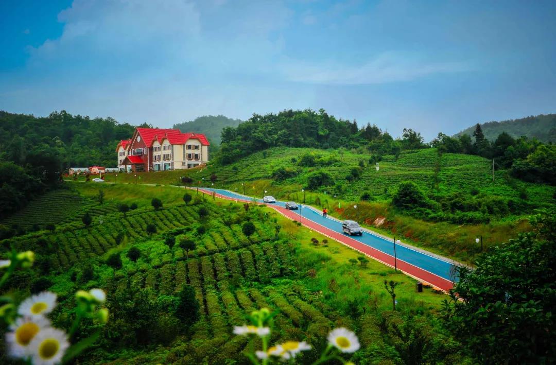 如今,一条7.5米的大道穿村而过,拉近了金花村与县城的距离。沥青路面的道路两旁种着不少树木,沿路两旁的茶树长势正旺。茶山里,三三两两的茶农正在为采茶做准备。