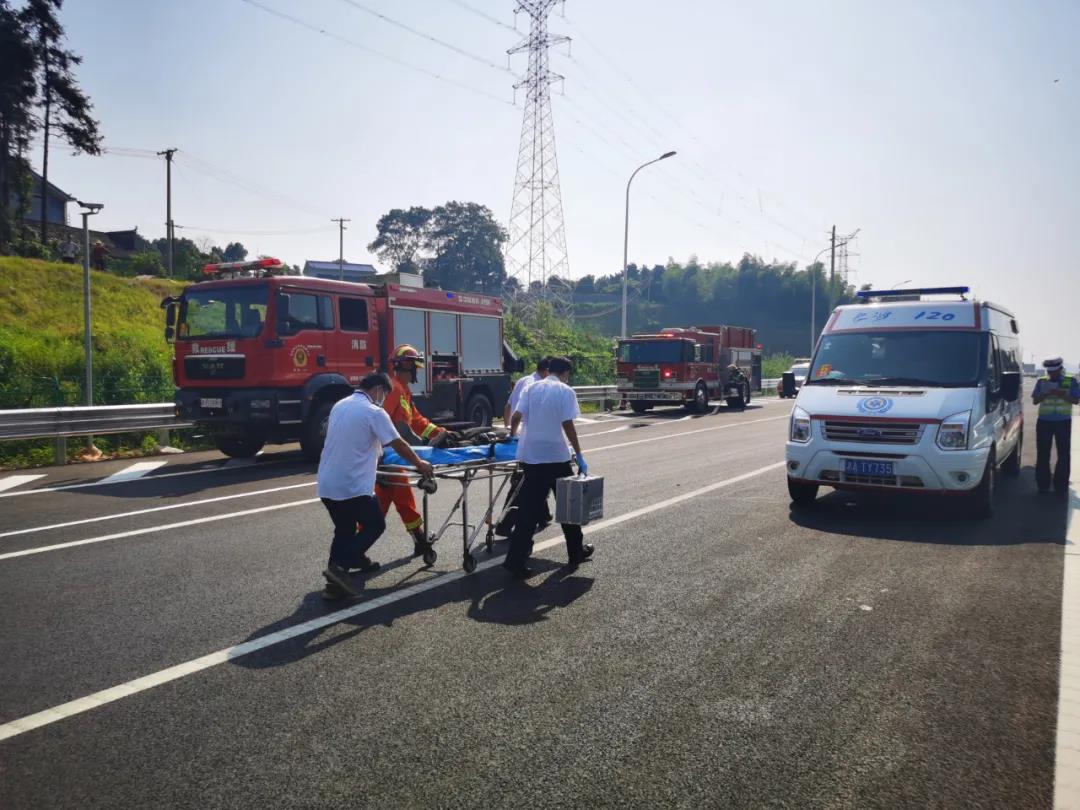 一辆小型轿车行驶至G5517长益北线高速从东往西方向,乌山隧道入口处时,因车速过快,车辆撞击护栏,紧随其后的另一辆小型轿车躲避不及追尾前车。前车受损导致驾驶员被卡车内,后车因事故起火自燃,现场情况十分紧急,事故造成了交通中断。