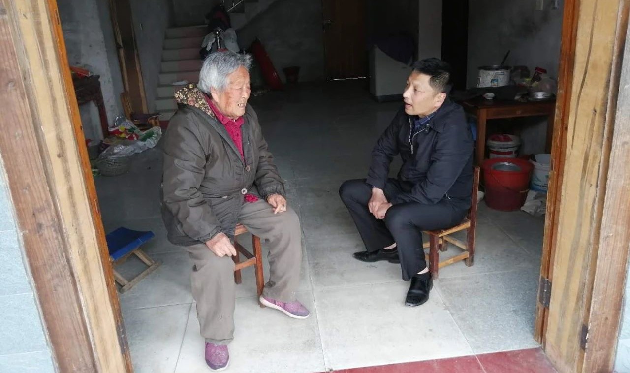 张峰走访93岁的五保户老人。