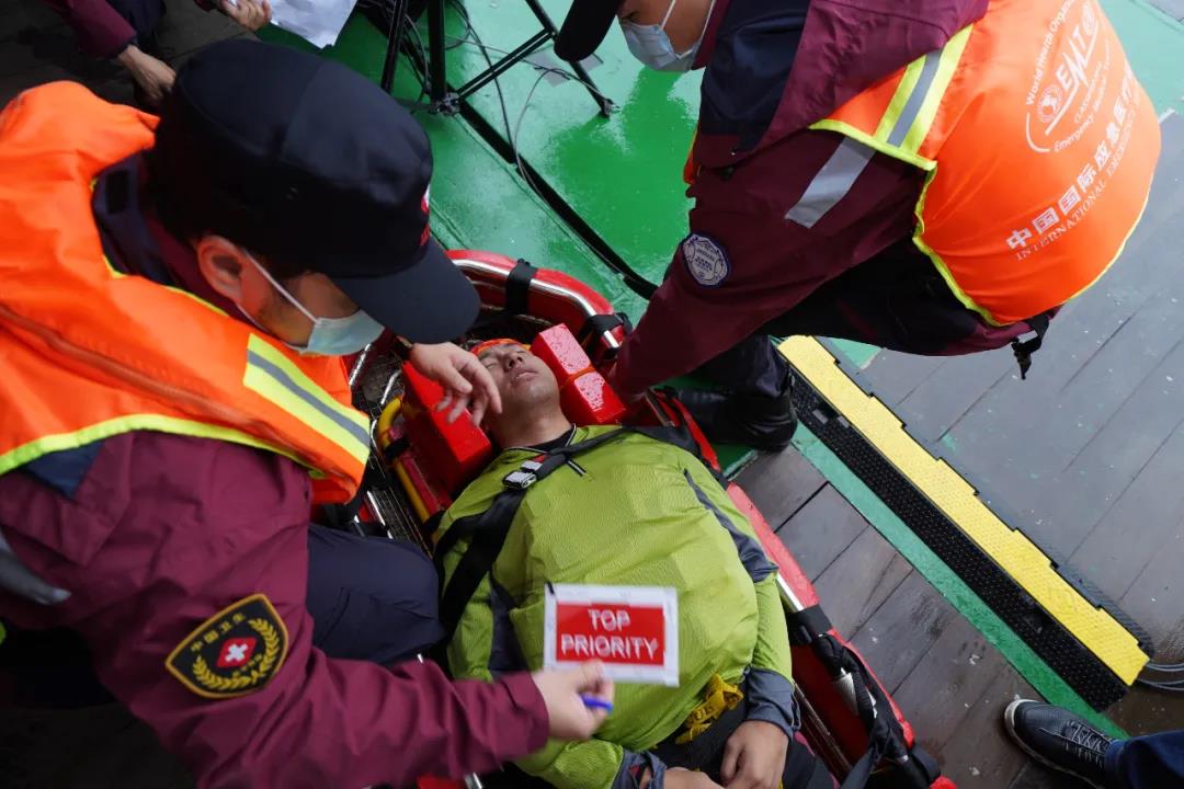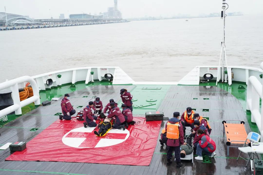其实,这是2020年9月18日,由中国海上搜救中心、国家卫生健康委员会卫生应急办公室、上海海上搜救中心联合组织开展的“2020年海上紧急医疗救援专项演练”中的一幕。此次演练以“强化医疗救援体系、保障海上人命安全”为主题,采用无脚本实战演练模式开展,重点演练了启动应急响应、救援力量协调调派、船舶自救、远程医疗指导、紧急医疗救援、伤病员紧急转移、岸基应急响应、现场警戒、远程信息传输等9个科目。