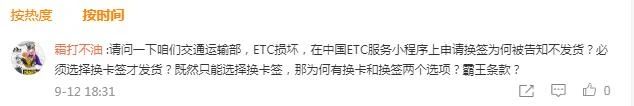 请问ETC损坏,在中国ETC服务小程序上申请换签为何被告知不发货?必须选择换卡签才发货?