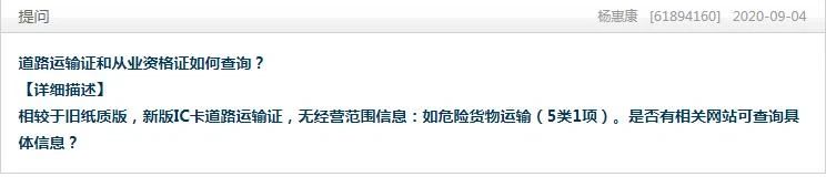 相较于旧纸质版,新版IC卡道路运输证,无经营范围信息:如危险货物运输(5类1项)。是否有相关网站可查询具体信息?