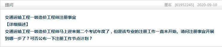 交通运输工程一级造价工程师马上迎来第二个考试年度了,但是该专业的注册工作一直未开始。请问注册事宜开展到哪一步了?可否公布一下注册工作节点计划?