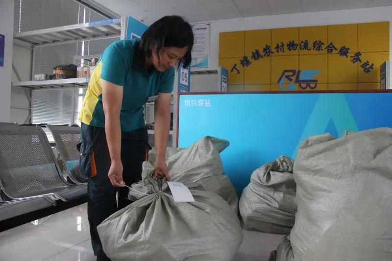 🔺 农村物流综合服务站的工作人员在分类打包包裹。