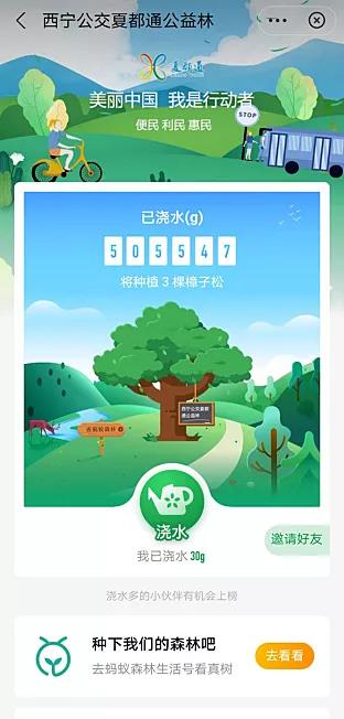南昌公交还与支付宝联合开展“绿色出行攒能量 公益林浇水种真树”活动,2020年12月31日前,市民通过支付宝扫码乘坐公交,不仅可以领取乘车优惠券,还可以积攒领取蚂蚁森林能量为公益林浇水。
