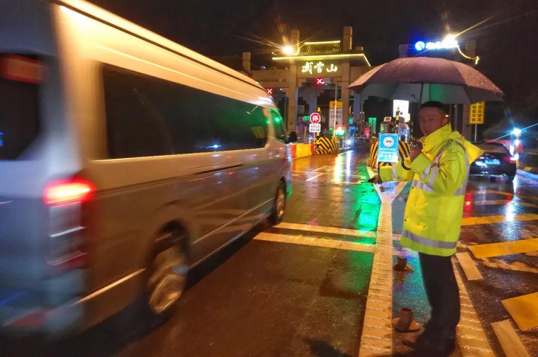 🔺 10月2日晚,因交通事故入口通道封闭,湖北交投汉十高速武当山收费所将疏导岗位前移,挨个提醒司乘人员改走316国道,避免拥堵。贺永 摄