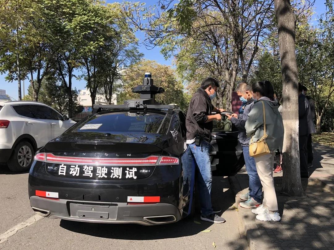 ▲ 本报记者北京试乘自动驾驶汽车。杨雷 供图