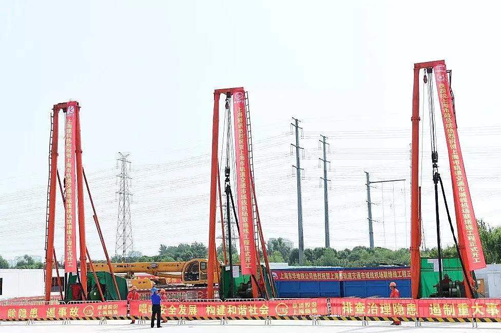 上海首条穿越黄浦江的市域铁路——上海市轨道交通市域线机场联络线正在加紧建设。建成后,虹桥、浦东国际机场互达时间将缩短至40分钟,并可实现刷公共交通卡进站。图为施工现场。