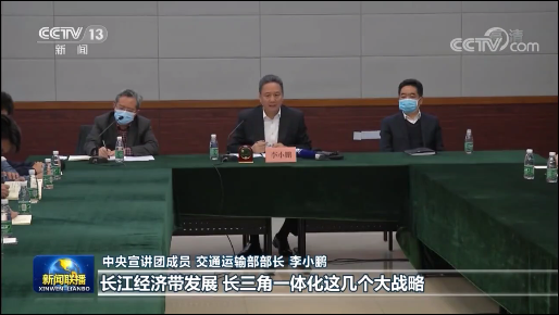 11月16日,央视《新闻联播》报道了中央宣讲团成员、交通运输部部长李小鹏赴江苏宣讲党的十九届五中全会精神。