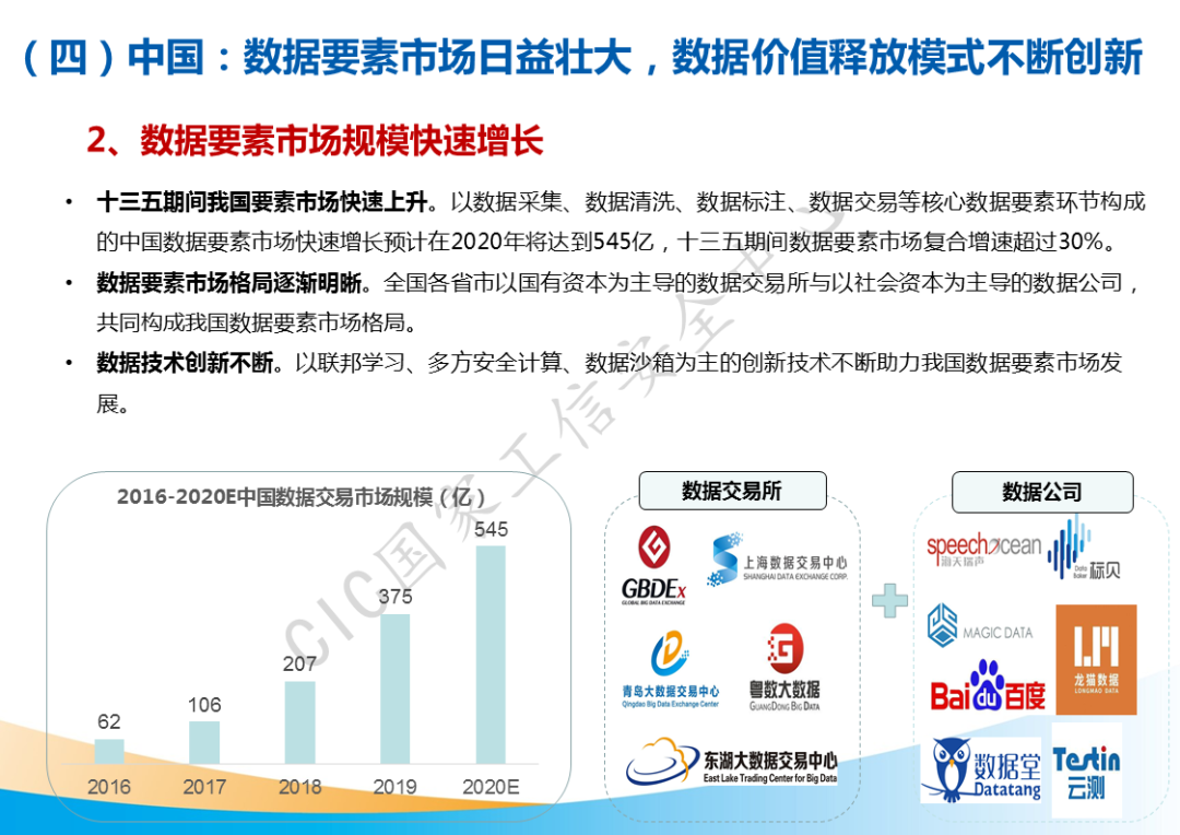 11月13日,第二十四届中国国际软件博览会“大数据与数字经济论坛——激活数据要素资源,加快产业数字化转型”云论坛成功召开,国家工业信息安全发展研究中心副主任何小龙发布了中心最新研究成果《中国数据要素市场发展白皮书》,系统梳理了国内外数据要素市场的发展现状,综合阐述了数据要素的基础性资源作用和创新引擎功能,指出了我国在培育数据要素市场方面面临的主要问题,同时提出了促进我国数据要素市场发展的措施及建议。