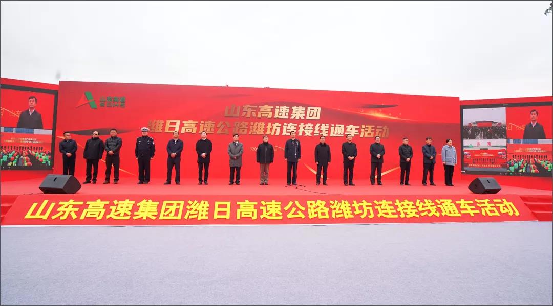 省交通运输事业服务中心主任安圣兵,山东高速集团党委副书记、董事李广进出席潍日高速潍坊连接线通车活动。