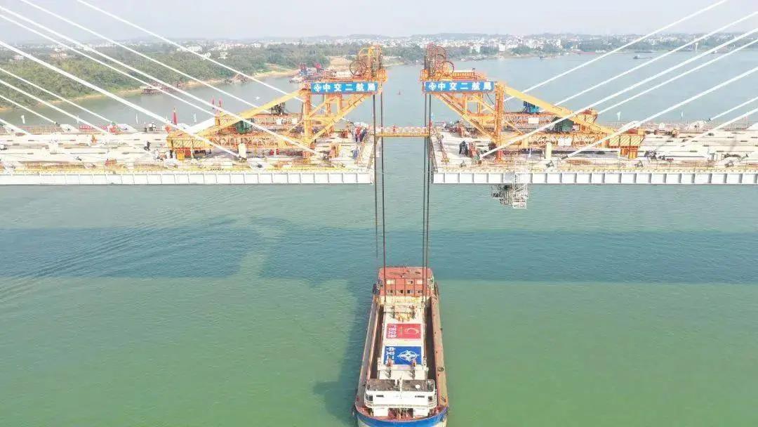 相思洲大桥建设工期紧、体量大,全桥主梁共15种类型,89个梁段。在主梁施工过程中,大桥坚持创新技术工艺,攻克工期紧张难题。项目采用桥面吊机整体拼装、吊装工艺,突破原有的主梁施工工艺,创新性采用三节段循环安装施工工艺,实现单节段梁段施工时间缩短了3-5天。大桥160根斜拉索的安装,则采用高速穿束机代替原有三角循环提升系统,大大提升施工效率。多项创新技术举措,力促相思洲特大桥圆满实现合龙,较原计划提前了10天。