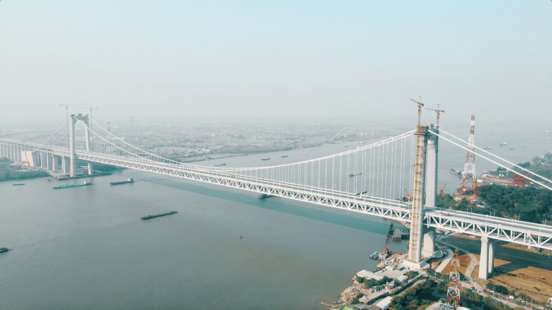 五峰山长江大桥位于连镇高铁扬州东至大港南站间,是世界上首座运行荷载量最大的高速公铁两用悬索桥,全长6.4公里。五峰山长江大桥荷载的公路、铁路车道数量和重量,都分别远远超过国际同类桥梁,刷新多项世界纪录,实现“中国制造”向“中国创造”历史性跨越。