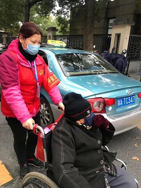 杭州95128爱心车队司机协助老年乘客出行。杭州交通局供图