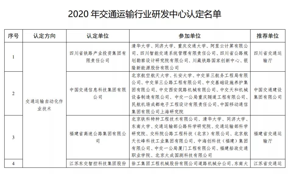 为加快推进交通运输科技创新体系建设,交通运输部组织完成了2020年交通运输行业野外科学观测研究基地和研发中心认定工作,现将认定名单予以公布↓