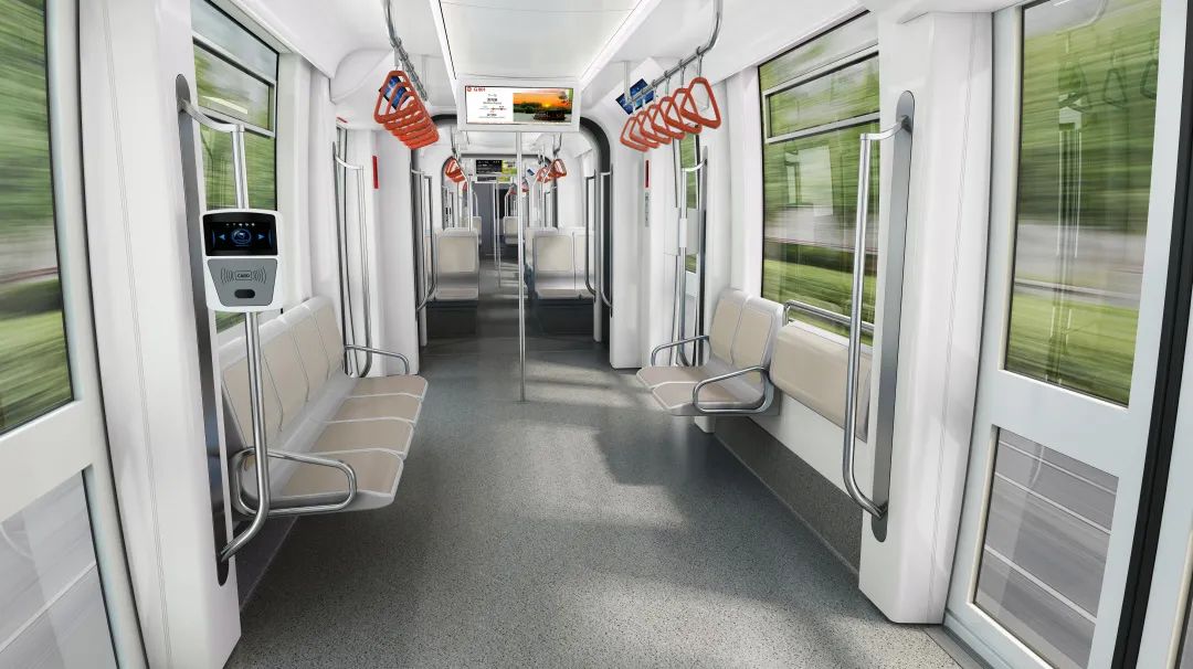 嘉兴有轨电车采用的是5模块100%低地板车辆,主要依靠超级电容储能供电,每列车配备4个超级电容单元,车辆充满电后有效储能达48.6KWh,利用超级电容“快充快放”的优点,车辆能在停站时间30秒内快速完成充电,续航里程可达12公里。车辆以超级电容器作为动力储存装置,无需架设地面或架空供电系统,也就是说是不带“辫子”的,城市中不会有密密麻麻的接触网影响城市景观。